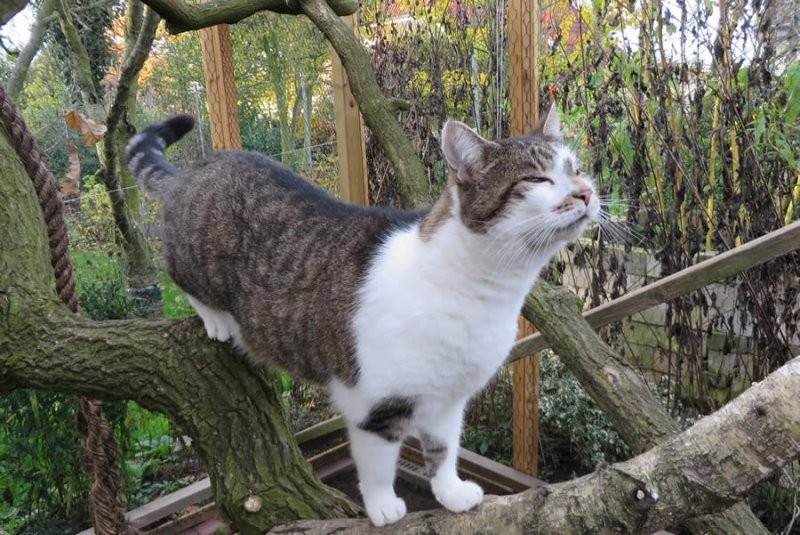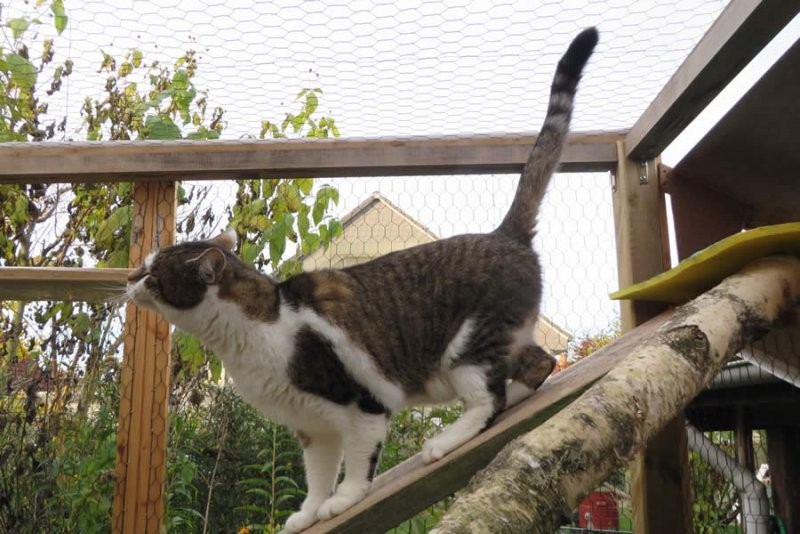 Das Freigehege hat einen direkten Zugang zum Katzenhaus und wird bei schönem und auch bei schlechtem Wetter gern von unseren Pensionsgästen genutzt.