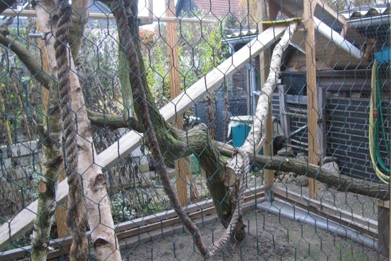 Das Freigehege ist stabil und sicher gebaut. Das behindert uns zwar hin und wieder in unserem "Freiheitsdrang", beruhigt aber unsere Frauchen und Herrchen, die uns auch im Freigehege in sicherer Obhut wissen.